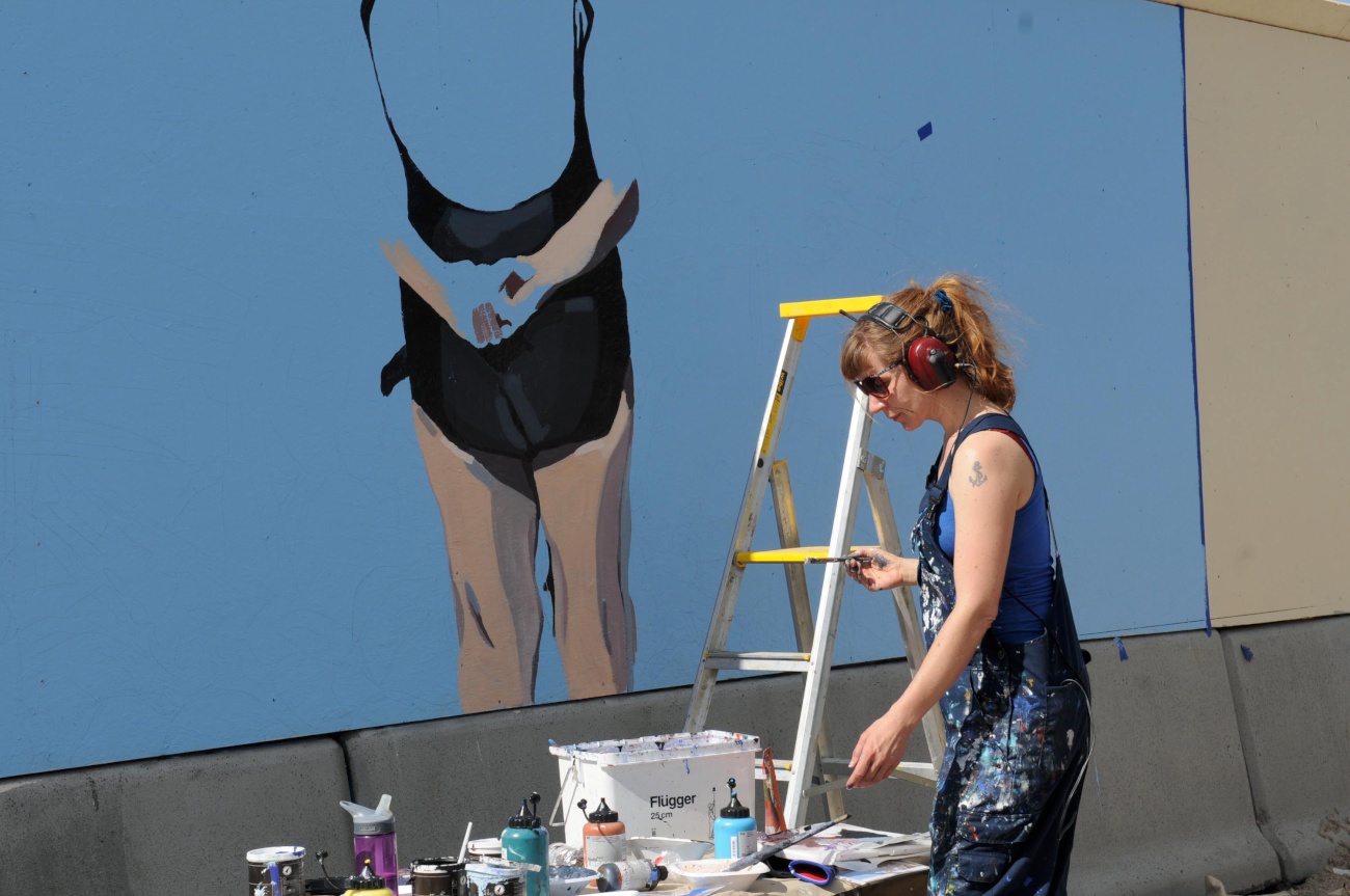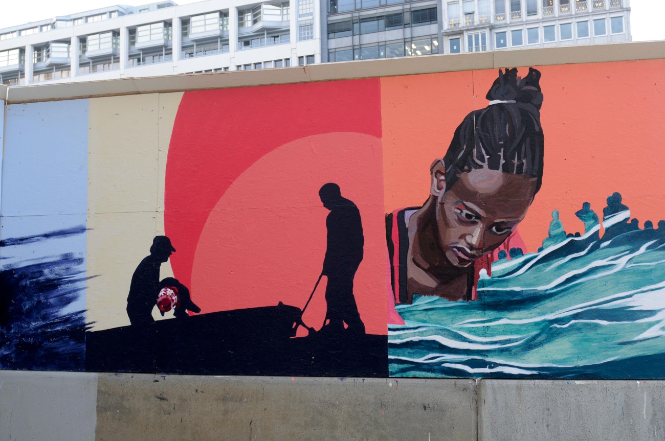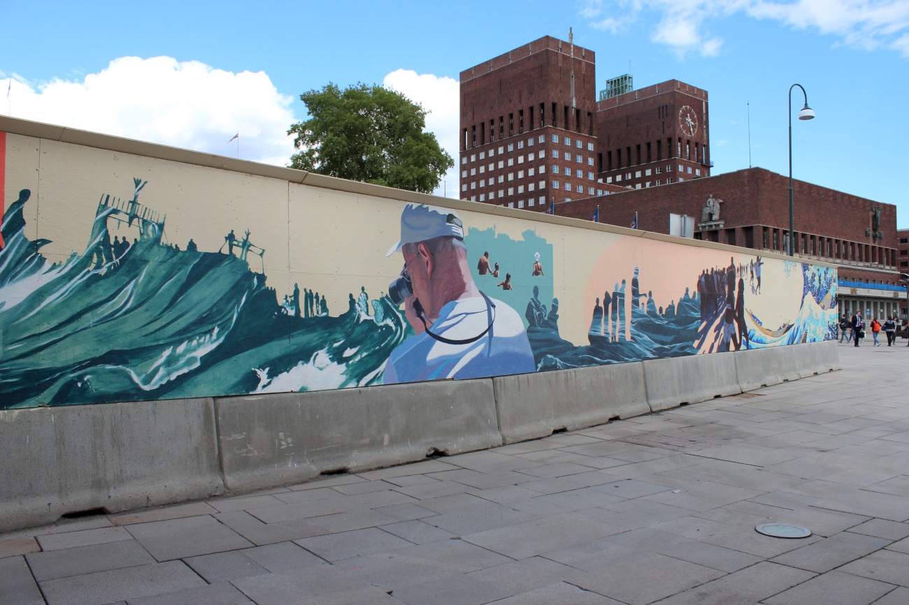 Veggmaleri på Fredsveggen ved Nobels Fredssenter, Rådhusplassen i Oslo. 10. juni 2015- 3. april 2016.